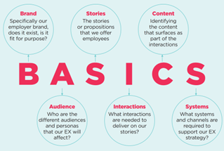 Once you’ve selected your core EX team – involving representatives from across the organisation - and have undertaken an EX Audit, the next step is the EX strategy. This will give you a clear definition of what you are trying to achieve and will also get the EX team on the same page by providing a forum to discuss the different views and priorities of the group and agree a united approach to move forward with. The methodology we suggest for the EX strategy is called BASICS — and it goes like this: